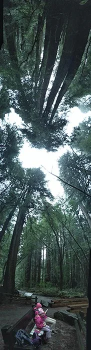 It seems like every time I've taken the kids to Muir Woods, it's been raining. A good thing to know is that in the gift shop you can buy a pretty cheap rain poncho for under $5, but it's best to be prepared. It's going to be a wet winter, so it might be a good opportunity to invest in a raincoat. We also used our Alite Designs Meadow Mat (http://shop.alitedesigns.com/alite-shop.html#blankets - we love this blanket) draped over a bench so we could sit and have lunch along the trail.