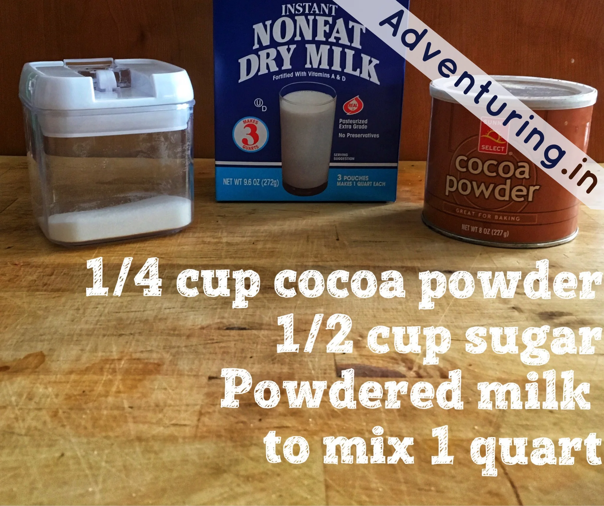 Walking down the baking isle at my local supermarket I spotted the nonfat instant dried milk. My initial reaction to dried nonfat milk is usually a mild disgust. However as we would need to add cocoa and some sugar, I started to think with all that flavor that this might not be too bad.